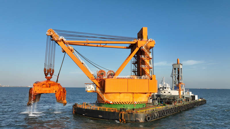 针对航道建造中的清礁难题,136立方米液压抓斗可直接开挖强风化岩,替代传统爆炸工艺,从源头上防止爆炸作业对海洋生态的扰动;船只搭载的一体化“环保利器”防污设备,好像精细滤网般阻隔施工发生的疏浚物,最大极限地削减疏浚物对海洋环境的影响,看护海水明澈的原生态底色。其200立方米液压抓斗拿手开挖泥沙,40分钟就可以装满一艘2000立方米泥驳,施工功率较传统船只提高数倍,将大幅度缩短工程建造周期。