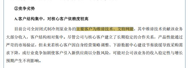 更核心的风险在于,这项新业务的命运几乎完全系于单一客户之手。报告期内,公司精密温控业务的主要客户为维谛技术、艾特网能,其中维谛技术贡献了该业务的绝大部分收入。
